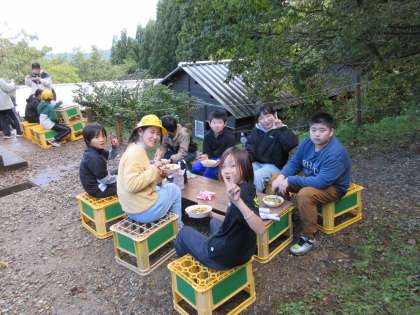 野外炊飯でカレーライスを作りました。自分たちで作ったほかほかのご飯とカレーライスは格別においしかったです。たくさんおかわりをしました。