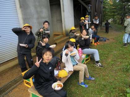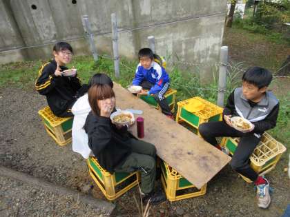 野外炊飯でカレーライスを作りました。自分たちで作ったほかほかのご飯とカレーライスは格別においしかったです。たくさんおかわりをしました。
