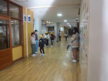 2年生は、かけ算の修行中。2年生フロアの手前で、2の段を唱えています。