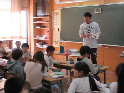 かけ算の学習が進んでいます。毎日、毎時間、習った九九を唱えてから学習がスタートします。