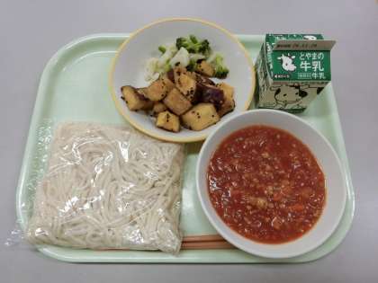 今日はソフト麺のミートソースかけです。ケチャップとウスターソースで味付けしました。大学いもはさつまいもをたくさん揚げました。今日もおいしくいただきました。
