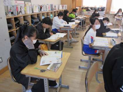 江戸の文化の学習です。資料集や映像を見て、当時の人々の暮らしや娯楽を知り、生活の様子を想像しました。