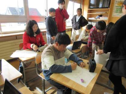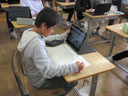 版画の下絵を描きました。クロムブックで自分の写真を撮り、顔の特徴をよく見ながら丁寧に描きました。