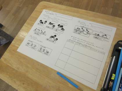 技7のマット検定に向けて、カードを使って練習に取り組みます。どんな技があるのか、どんなポイントがあるのかを確認しました。
