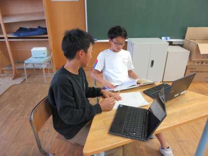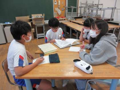 卒業文集のクラスページの企画を考えています。先輩たちのアルバムを参考にし、アイディアを出し合いました。