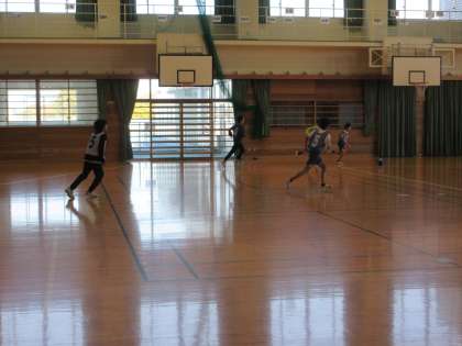 フットサルをしました。声をかけ合って、元気にボールを追いかけました。