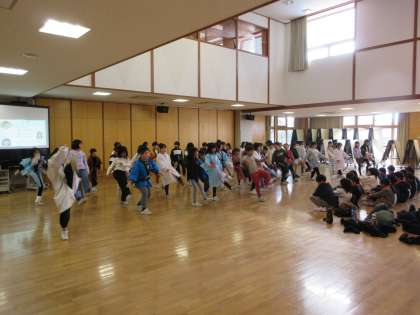 続いてゲームタイムを楽しみました。盛り上がって、一気に仲良くなった子供たちです。あっというまに時間が過ぎ、花道をつくってお別れしました。3学期の再開を楽しみに・・・。