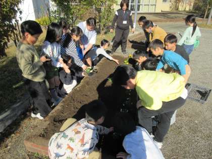 今日は久しぶりの晴天でした。各クラスで学級花壇の整備を行いました。冬の花の苗を植え、大切に育てていきます。