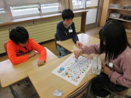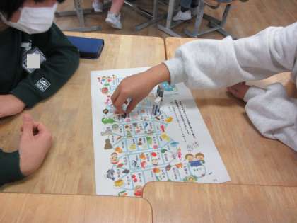 都道府県すごろくをしました。止まったマスの都道府県について文章を考えます。おもしろい文章がたくさんできて、盛り上がりました。