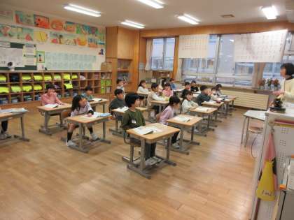 「たぬきの糸車」の学習です。「やぶれしょうじ」という言葉から、「障子って何?」「おばあちゃん家にあるよ!」など、子供たちの話がどんどんつながっていきました。