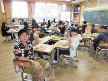 今日は選択献立でした。自分の選んだ主菜とデザートを食べられて、子供たちは大満足でした。給食後、栄養職員のところに子供たちが「今日のデザートおいしかったです!」と感想を言いに来るほどでした。