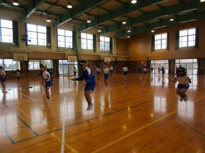 なわとび運動です。前跳び、後ろ跳び、駆け足跳びなど、基本的な跳び方を確認しました。