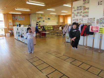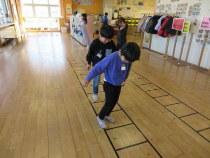 大休憩の1年生フロアの様子です。ラダーや縄跳びの練習をしたり、6年生と楽しくお話をしたりと、のんびり過ごしています。