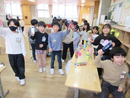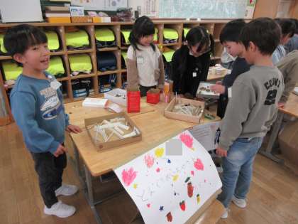 どんぐりを使った楽器をつくりました。音楽屋さんだそうです。いろいろなレベルの迷路を楽しめるお店もあるようです。