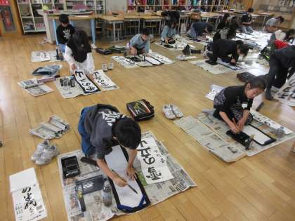 書初めの練習をしました。前回よりも格段に上達しています。
