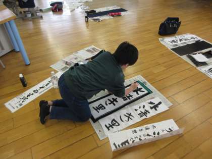 書初めの練習です。最後まで集中を切らさず練習する子供の姿も見られました。