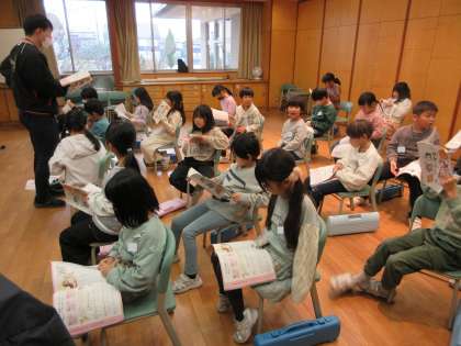 「あのね、のねずみは」の歌詞の意味を考えました。歌詞に合わせた歌い方を工夫します。