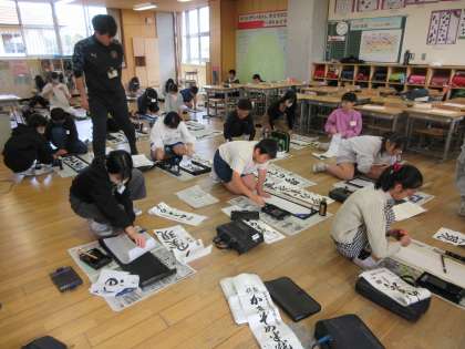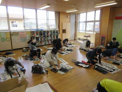 書初めの練習です。前回書いたものを見て、今日の目当てを立ててから取り組みました。