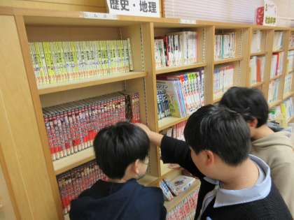 図書室で、伝記を選んでいます。先人の生き方から学ぶこともあります。子供たちは、どんなことを学ぶのでしょうか。