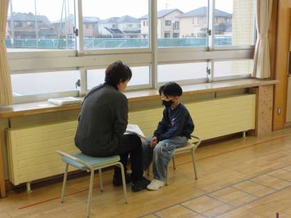 1年生にとっては、2回目のあゆみです。学習だけでなく、生活面でもがんばったことを先生とお話しました。