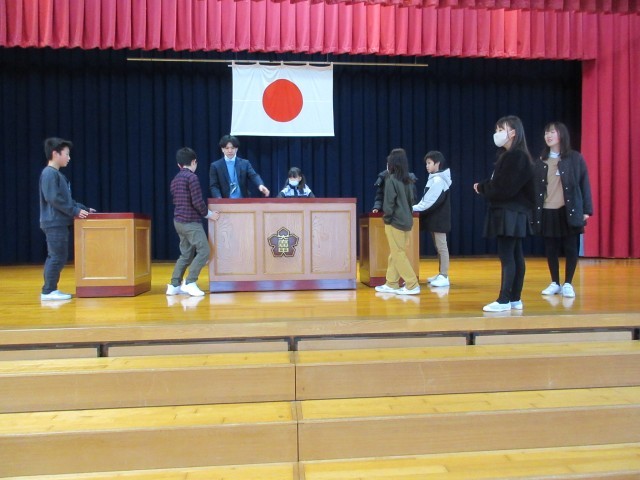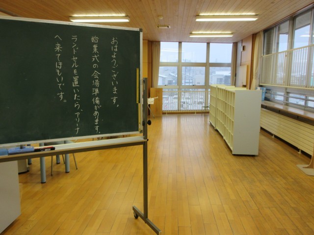 3学期からは、始業式のアリーナの準備が5年生へとバトンタッチされました。登校した5年生が、自主的にアリーナに集まります。初めての仕事でしたが、先生の説明をよく聞いてスムーズに準備をしてくれました。さすが、もうすぐ最高学年!