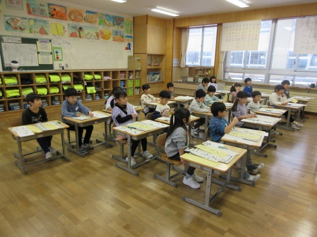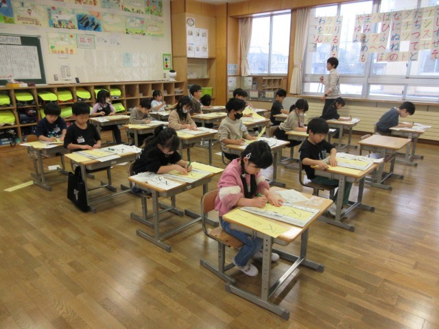 初めての書き初め大会です。これまでの練習で学んだことを思い出しながら書きました。