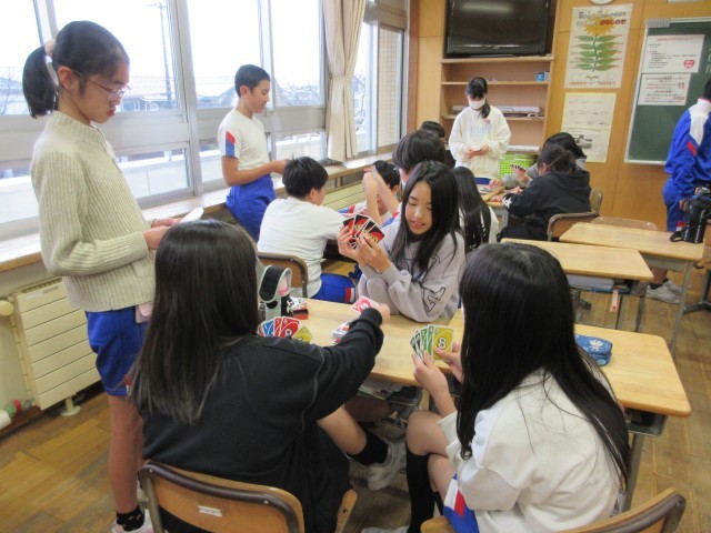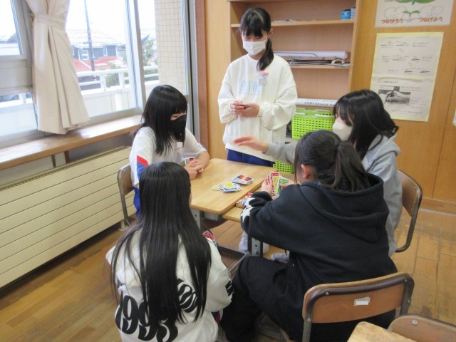 天気が悪く外で遊べないので、カードゲームを楽しみました。