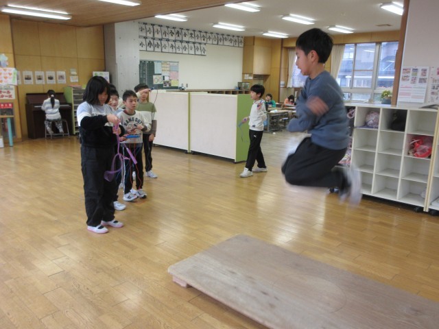 学級でゲームをしたり、縄跳びの練習をしたりして、それぞれの時間を過ごしました。