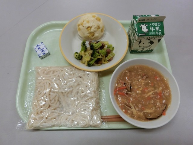 今日はソフト麺でした。肉みそソースはしょうがをたっぷり使いました。今日もおいしくいただきました。