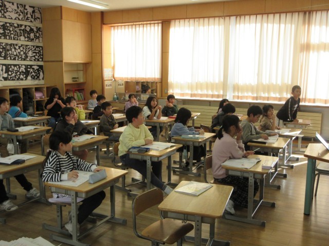 新出漢字を書きました。「門」を使った言葉を考える子供たち。「校門」「関門」・・・次の言葉がなかなか出てきませんでしたが、「笑う門には福来る」と発言する子供がいました。言葉をよく知っていますね。