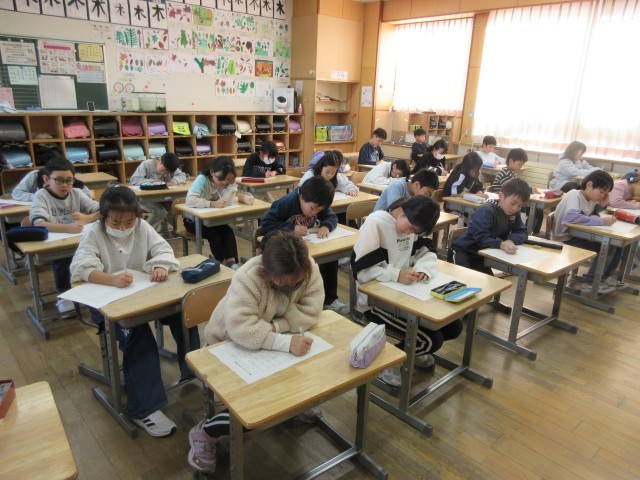 いよいよ明日は漢字チャレンジテストです。最後の練習プリントをして、どのくらい覚えたのかを確かめました。明日は、力を発揮してもらいたいです。
