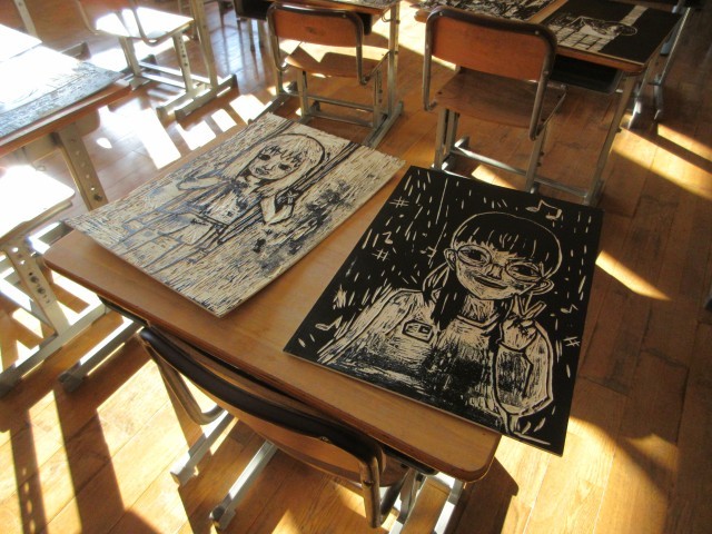5年生フロアには、刷り上がった版画と板が乾かしてあります。自分の特徴を捉えた作品ばかりです。学習参観で掲示されるそうなので、ぜひご覧ください。