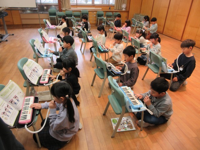 「とんくるりん ぱんくるりん」を鍵盤ハーモニカで演奏しました。指遣いも上手になっています。