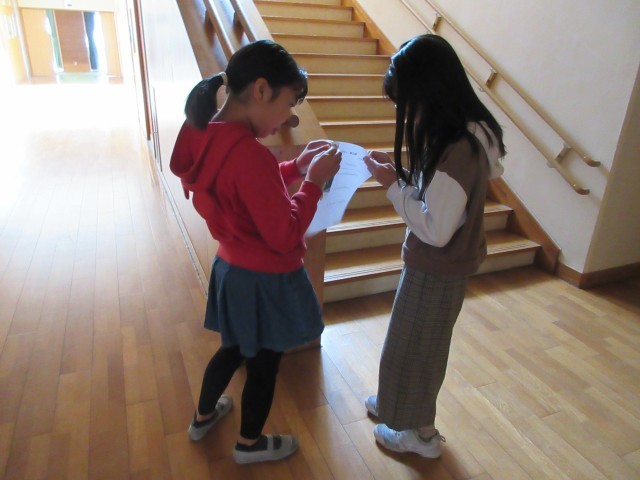 4年生が明日から始まる飼育栽培委員会のスタンプラリーの仕事のお手伝いをしていました。