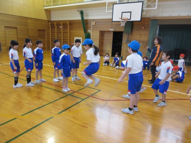 長縄跳びの練習です。連続で入れるようになり、記録もどんどん伸びてきました。