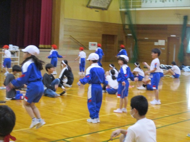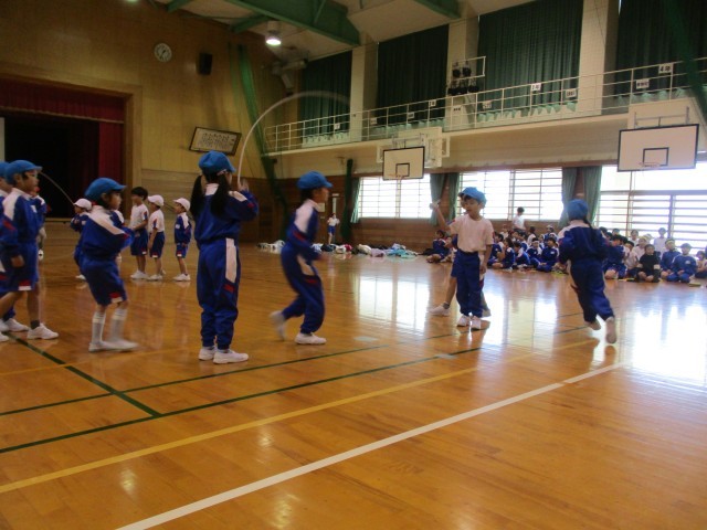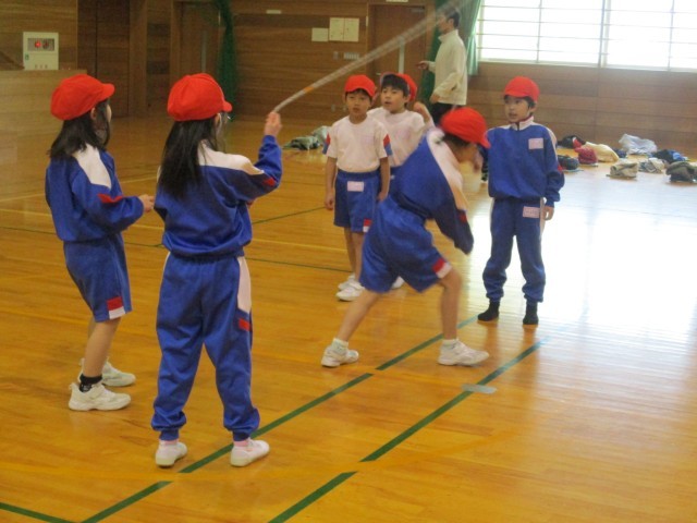 今日は、なわとび大会がありました。これまで練習してきた成果があらわれて、短縄跳びでは、前跳びや後ろ跳びで20回クリアできた人が多かったです。長縄跳びでは、8の字連続跳びに挑戦し、新記録が出たチームもありました。他の学年のときには、跳ぶ速さに驚きながら、大きな声で声援を送りました。