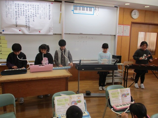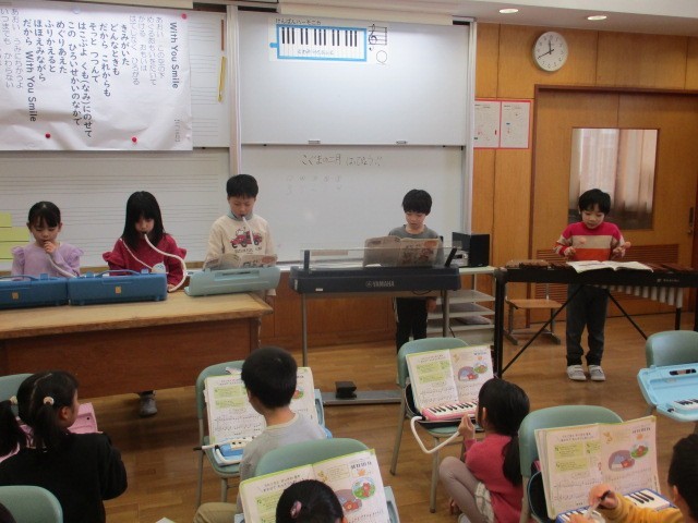 鍵盤ハーモニカ、木琴、オルガンを使い、気持ちを合わせて演奏しました。