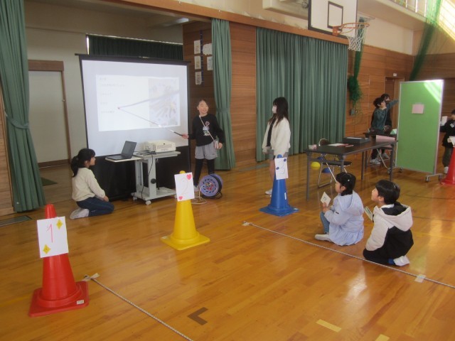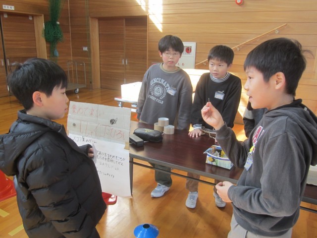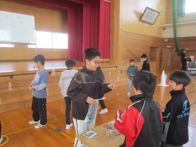 今日は、身の回りにあるまだ使える物を再利用して、「もったいない市」を開きました。大広田校区で行われたもったいない市を参考にしています。1~3年生が、いろいろなゲームやクイズに挑戦していました。