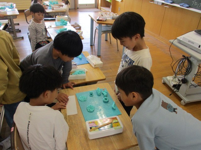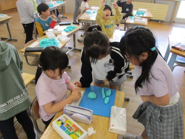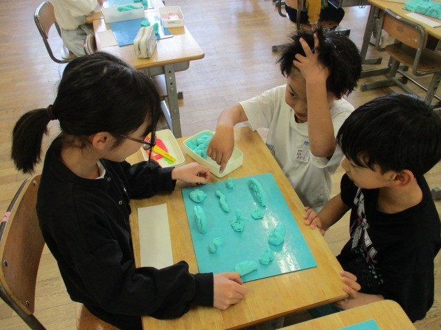 本日は図工でねんどを使って、様々な形の作品を作りました。