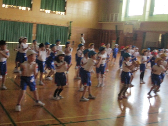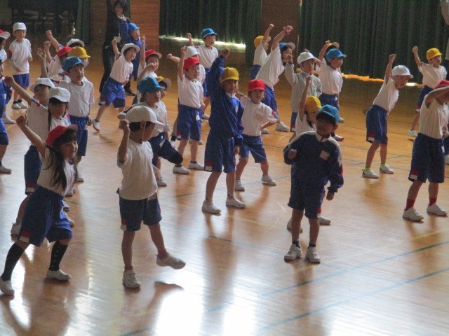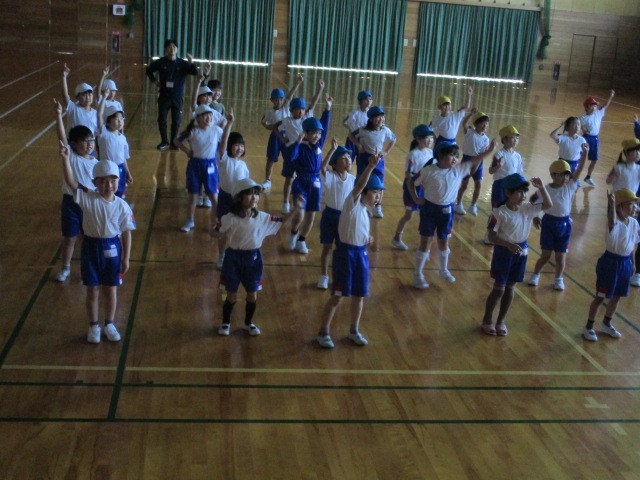 2年生と1年生は、運動会でダンス玉入れをします。今日からダンスの練習を始めました。まだまだ うまく踊れませんが、楽しい曲でノリノリです。どんな曲で踊るのか楽しみにしていてください。