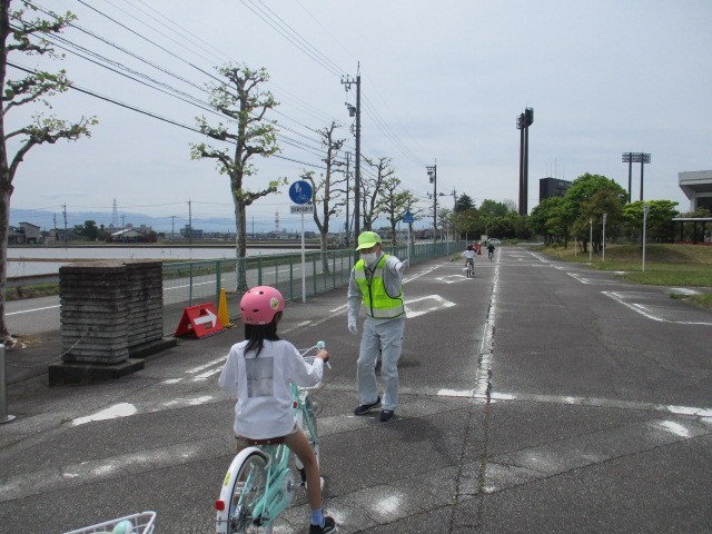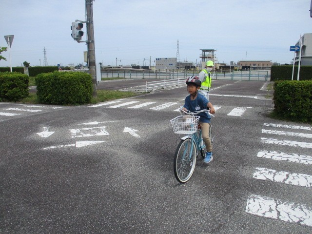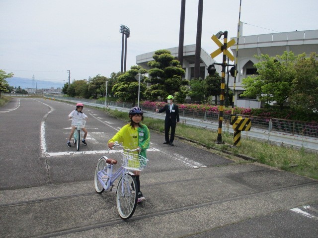 実際の乗車訓練では、停車中の車や工事中に見立てたコーンを避けて通行する方法や、踏切の横断の仕方、横断歩道の渡り方など様々な場面で安全な乗車ができるように練習することができました。
