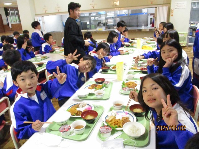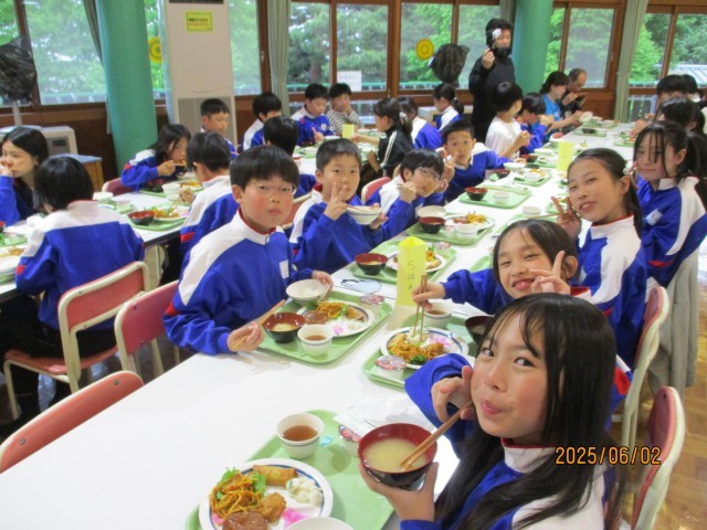 食堂でのご飯の様子です。宿泊学習でみんなと食べる食事は、また一段とおいしかったようです。これからも、たくさん食べて元気に過ごしましょう!