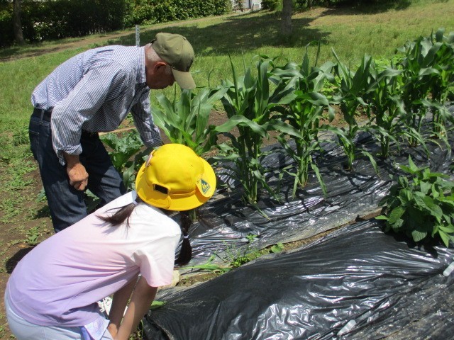 今日は、前に来ていただいた「野菜の先生」に、野菜の様子を見てもらって、困っていることについて質問したり、お花とめ花の違いについて教えてもらったりしました。葉っぱが食べられたなすの虫退治のことや、元気のない野菜の世話、収穫の時期のことなど 気になっていたことを教えてもらえてうれしそうでした。