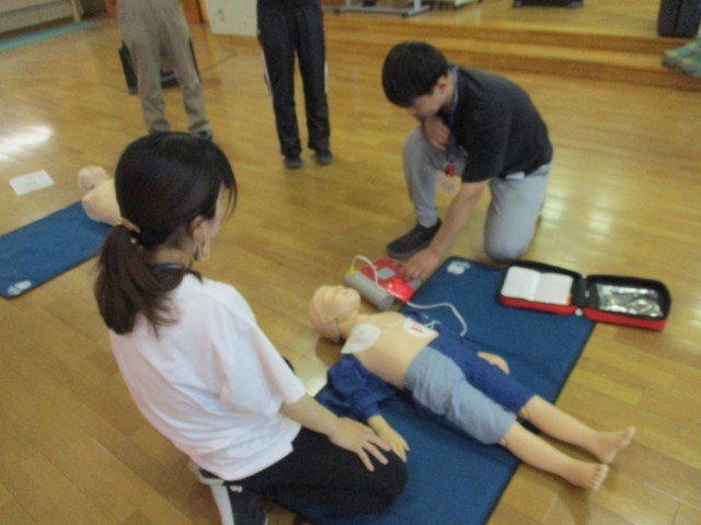 プール開きに向けて、教職員で救命救急講習会をおこないました。AEDの使い方、心肺蘇生法を教えていただきました。安全で楽しい水泳学習になることを願っています。