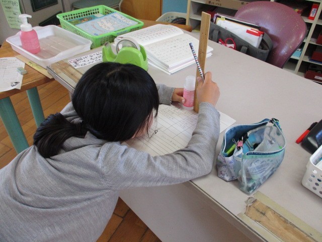 算数で 30㎝ものさしで長さを測ったり、直線を引いたりする学習をしました。