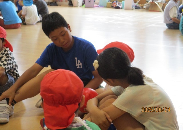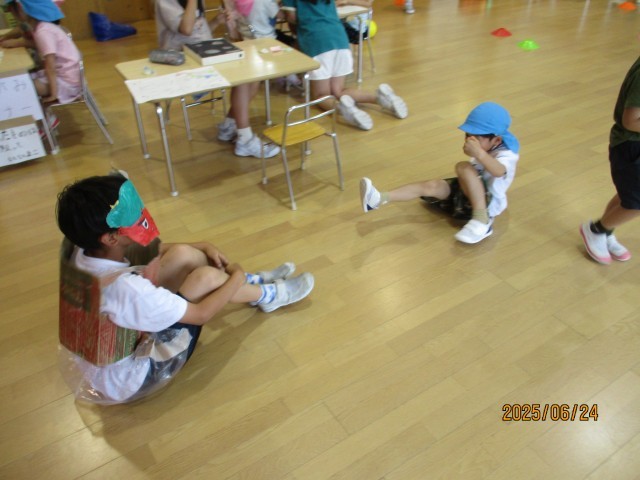 総合的な学習の時間でおおひろたこども園に行って、年長児と初めての交流をしました。「どんな遊びがいいのかな」「どんな子供たちなのかな」とドキドキしながら訪問しました。うまくいったことも課題になったこともたくさんあったと思いますが、2回目の訪問が楽しみになるくらい、一人一人にとって充実した時間になったようです。