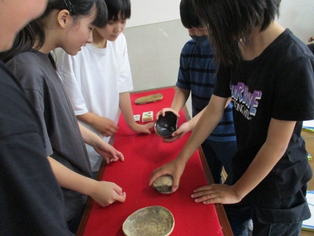 6年生社会科見学の様子です。富山県埋蔵文化財センターでは、実際に出土した土器や器を触ってみたり、火起こし体験をしたりしました。火がなかなかつかず、昔の人の生活の大変さを実感しました。