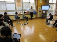 学活で、遊び方の工夫について考えを出し合っています。