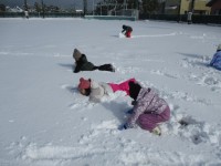 3限目に雪遊びをしました。晴れ間も見えとても気持ちよく楽しそうに遊びました。