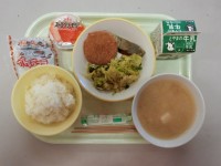 今日の献立は、ごはん、牛乳、厚焼き卵、かぶの色どり、サッポロラーメン、大豆ふりか...